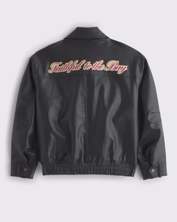Show your team pride in style with the 49ers Vegan Leather Flight Bomber Jacket. Crafted from high-quality vegan leather, this jacket delivers a sleek, durable, and cruelty-free design.