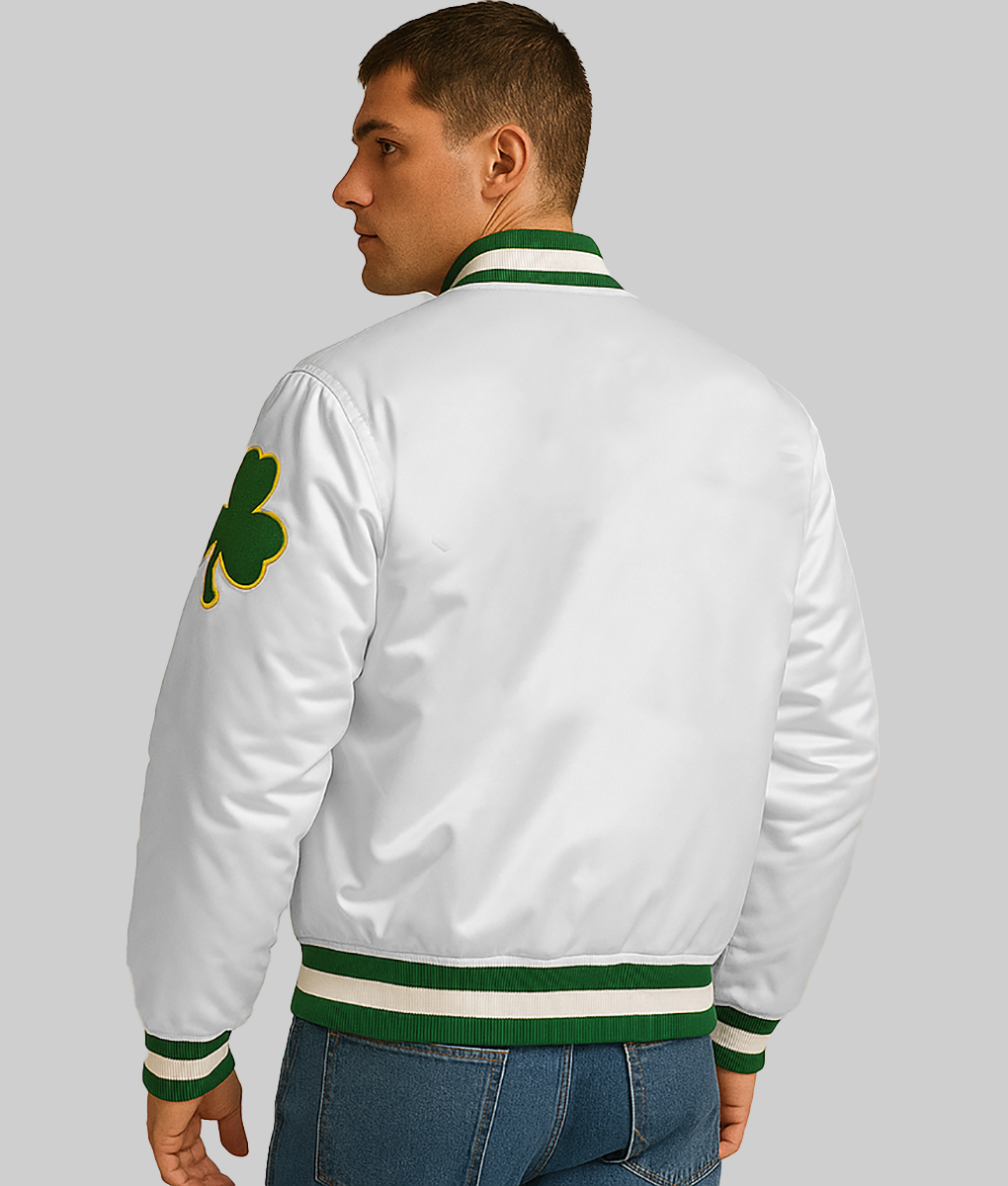 The 90s Boston Celtics Vintage Satin Jacket is a nostalgic throwback to classic NBA fashion. Featuring the iconic Boston Celtics branding, this retro satin jacket captures the spirit of 90s basketball culture and vintage streetwear style.Made from lightweight satin fabric, it offers a smooth, comfortable fit ideal for casual outings, fan events, or layering over hoodies and tees. The front zipper closure ensures easy wear, while ribbed cuffs and hem provide a secure fit. Its green and white colorway stays true to Celtics’ iconic team colors, making it a must-have piece for collectors and basketball enthusiasts.Whether you’re reliving the golden era of 90s NBA or simply adding a unique vintage piece to your wardrobe, this jacket delivers both style and nostalgia.