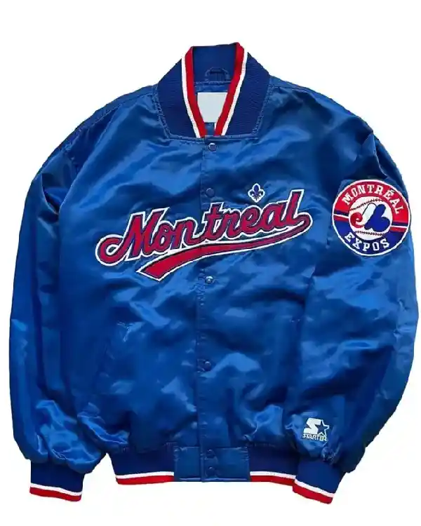 90s Montreal Expos Bomber Blue Satin Jacket