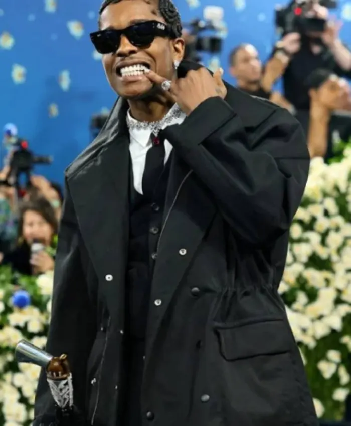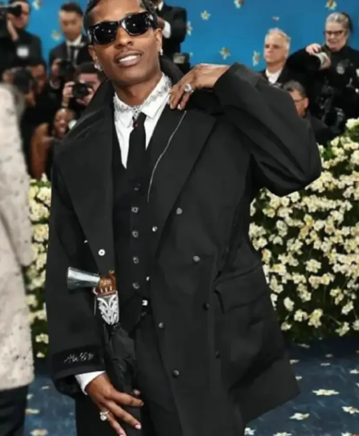 A$AP Rocky Met Gala 2025 Black Jacket. Crafted from premium black leather, this jacket mirrors the bold and elegant style A$AP Rocky showcased at the 2025 Met Gala, making it a must-have for fans and fashion enthusiasts alike.