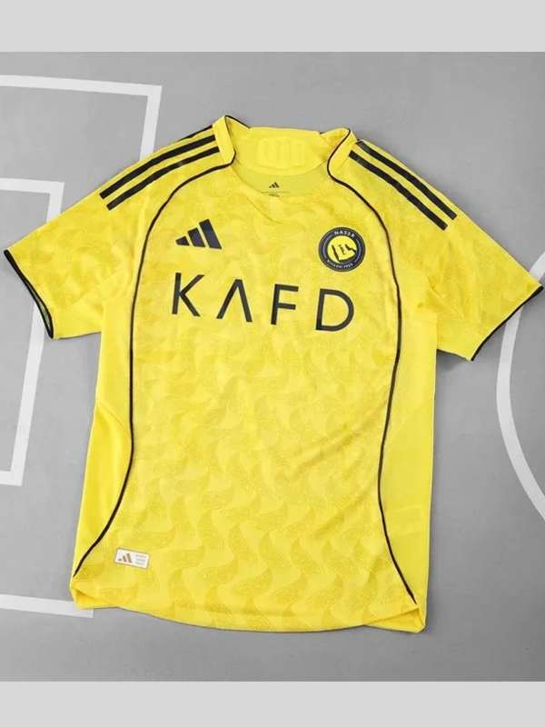 Show your support for one of the most exciting football clubs with the Al-Nassr 2025-26 Home Jersey, designed for passionate fans who want both style and performance. This jersey features a modern athletic fit combined with lightweight, breathable fabric to keep you comfortable on and off the pitch.