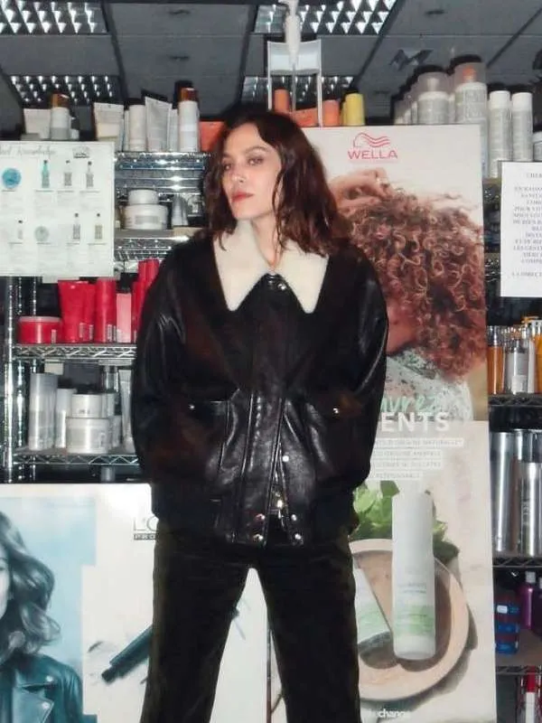 Be the first to review “Alexa Chung Flight Bomber Black Leather Jacket”