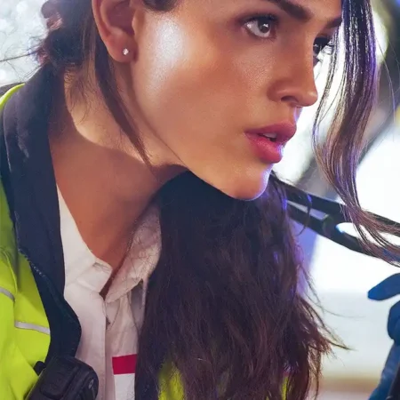 Eiza Gonzalez 2022 Movie Ambulance Cam Thompson Green Police Jacket