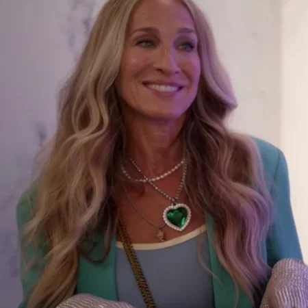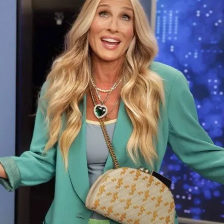 With this Teal Blazer, you’ll be the talk of the town. This captivating blazer is the appropriate outfit for all fans of the American comedy-drama show, ‘And Just Like That.’ This attire was spotted on the stunning actress Sarah Jessica Parker while she portrayed Carrie Bradshaw in the show. She has done a fantastic job with her personality and appears gorgeous on the show. The And Just Like That Sarah Jessica Parker Teal Blazer is a superior quality suiting fabric with an inner viscose lining to make it smooth and comfy all day. We constructed it with impressive aspects, including a lapel-style collar, a front buttoned clasp, and open hem cuffs on long sleeves to give it a vintage appeal. Functionality meets design with two sides and inside pockets, providing a discreet and safe place to store your valuables or personal stuff. The rich teal excellent color gives it a more traditional appeal that indicates confidence, femininity, and uniqueness and maintains its trendy appearance. Let your fashion sense demonstrate with this gorgeous And Just Like That Sarah Jessica Parker Teal Blazer. Grab it; it’s built to last, making it a long-term investment in your wardrobe; it’s yours today.