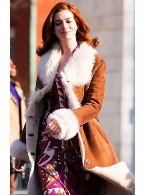 Anne Hathaway Lexi Shearling Suede Leather Coat