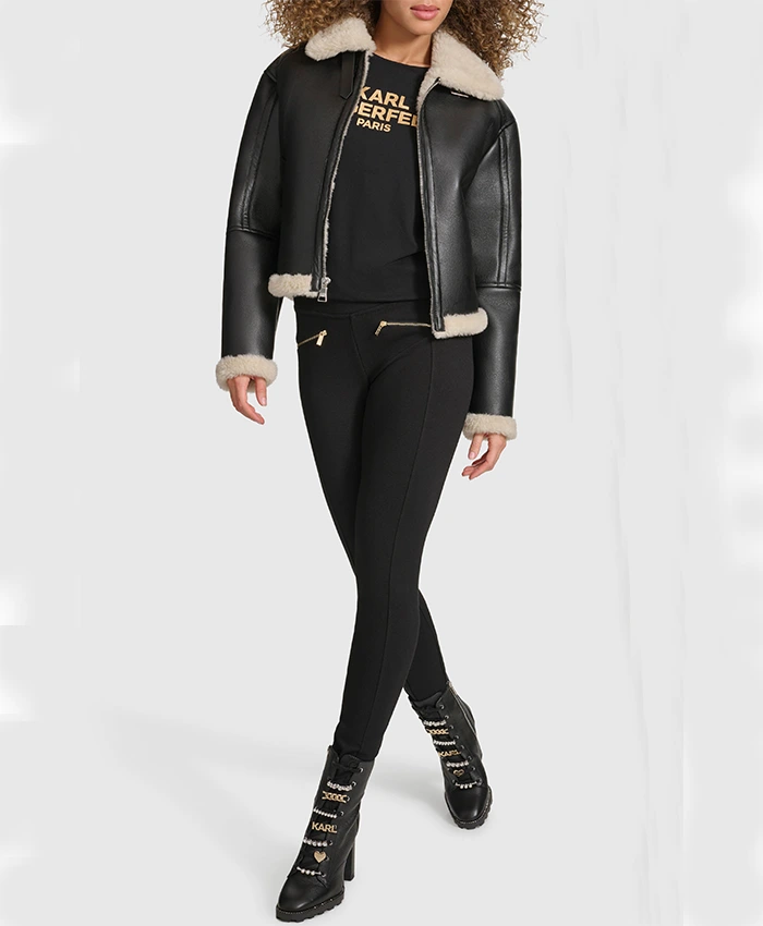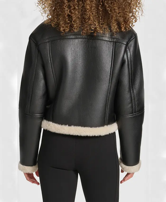 The classic Black Aviator Shearling Coat is enhanced with some modern details similar a white sheepskin fur collar around the neck that gives it a chic and sophisticated vibe, the centered zipper closure at the front is available for secure closing, and full sleeves have embellished shearling cuffs for a timeless look. So, whether you are going for a casual outing or a night out, its versatile design pairs well with jeans, skirts, or even formal dresses. Therefore, grab it now to pull off a versatile look!!