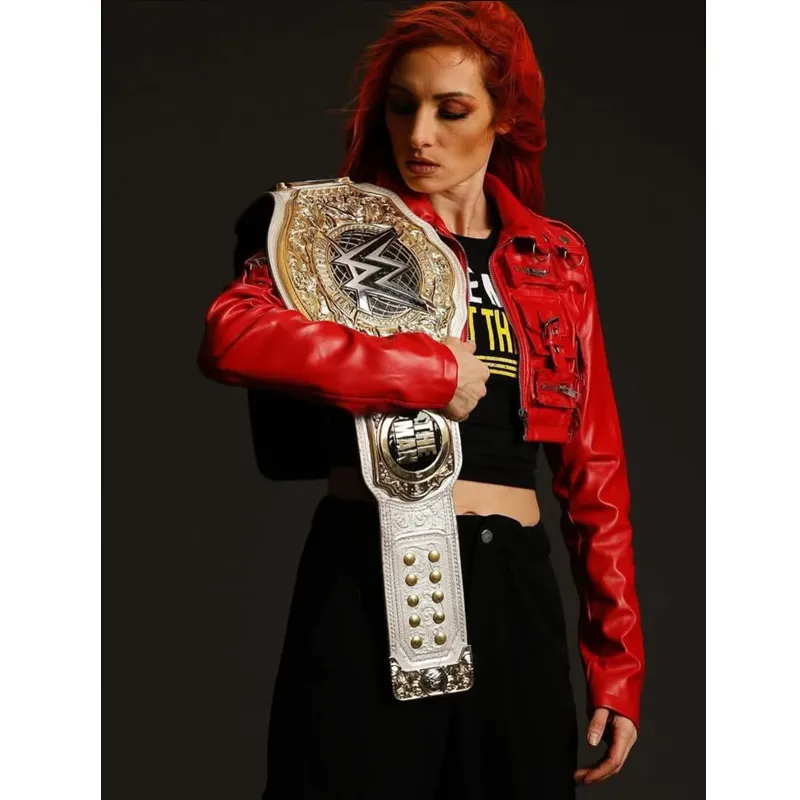 Step into the bold and fearless world of fashion with the WWE Becky Lynch Cropped Red Leather Jacket, inspired by the iconic look worn by the wrestling superstar during one of her unforgettable RAW appearances. This stunning jacket perfectly captures Becky Lynch’s fierce persona while offering a high-fashion edge that radiates confidence and charisma.