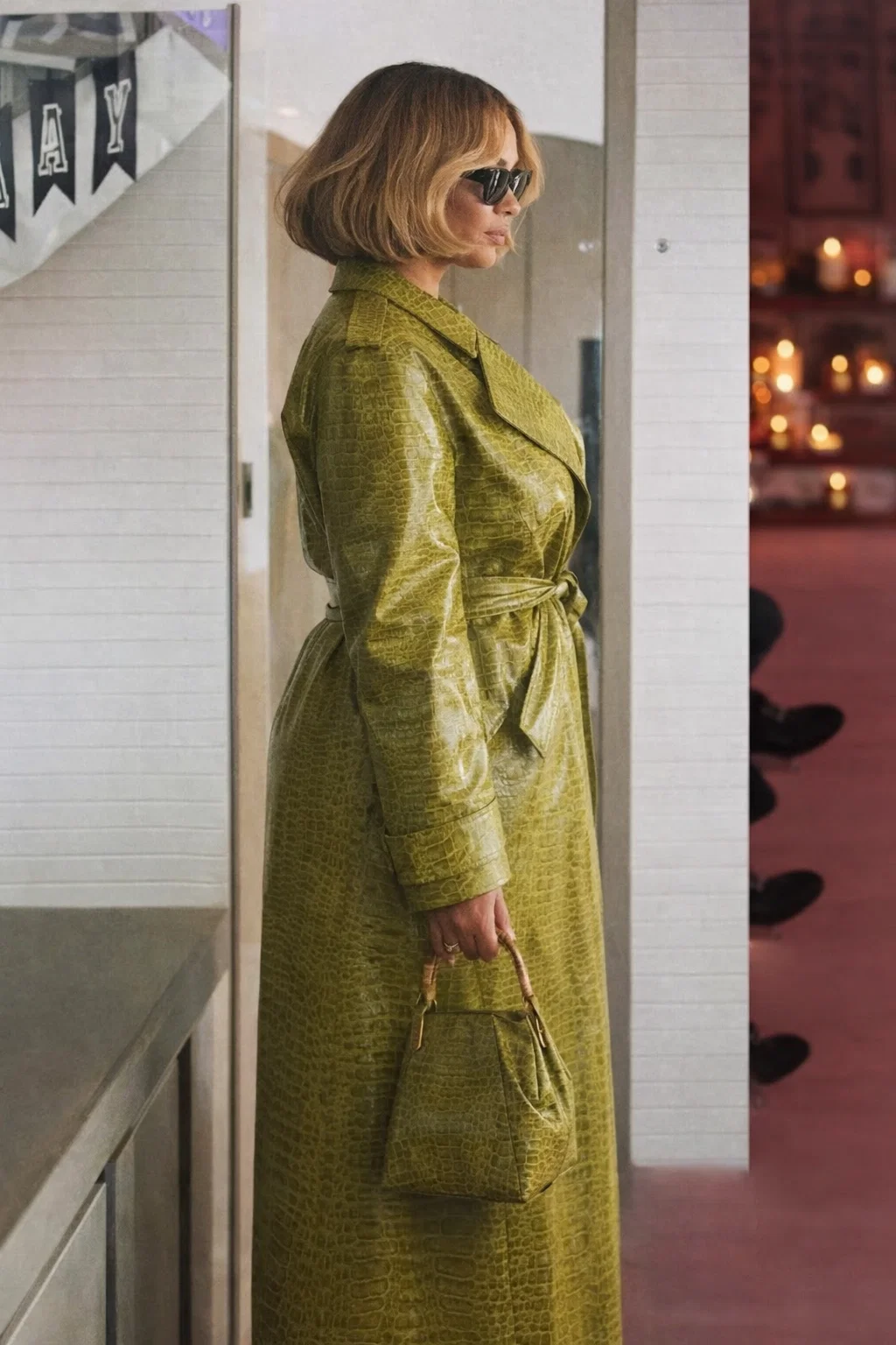 I bought this amazing olive green coat for my sister before the Super Bowl event and she looked absolutely stunning in it! The PU leather feels great, the lapel style is classy, and the belted closure gave the perfect shape. Totally worth it!