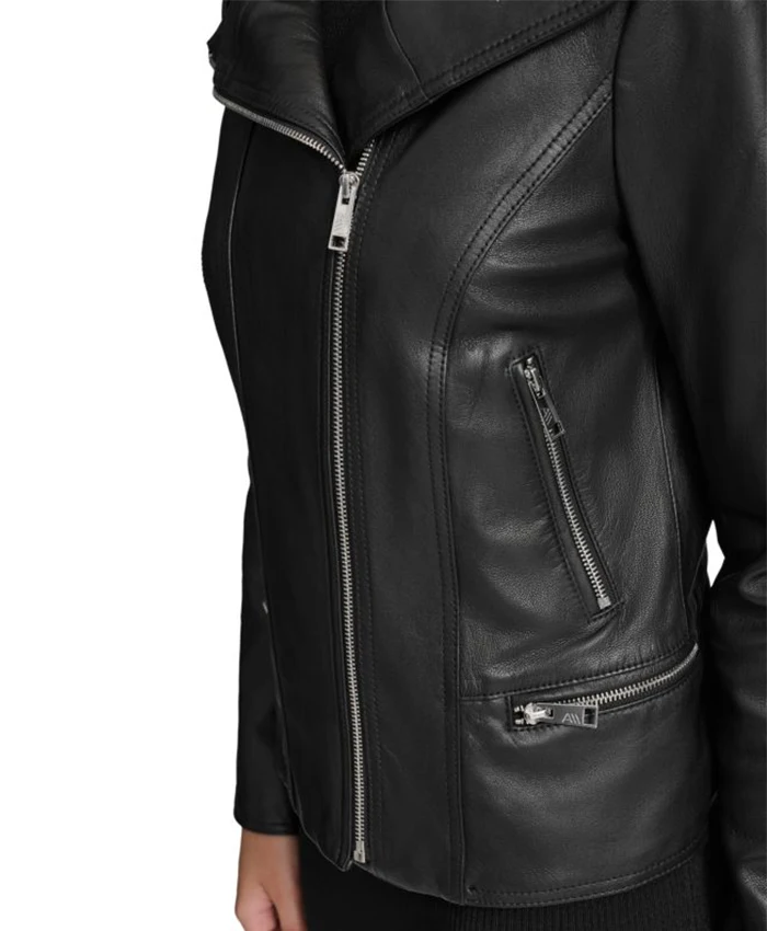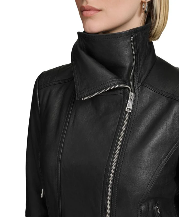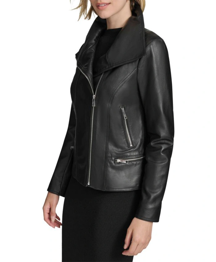 In this smart world era, where everything has changed with time, innovations and technologies are heavily on everything. We have made this masterpiece to give you a more modern look with your attires and provide high-end comfort and relaxation. In the wide variety of jacket collections, we understand it’s difficult to pick the best one that is fruitful for any season and outfit. We have made this biker collar womens black leather jacket perfect for formal and informal looks. This biker jacket allows you to create multiple stylings and elevate your style game to the next level.