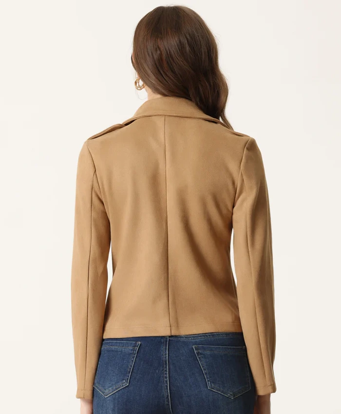 It’s stylish and so easy to wear. Made of 100% suede leather, the Ladies Tan Suede Jacket?feels so soft and smooth while staying very strong for everyday use. Camel color gives a cool and modern look that suits many outfits. The front zipper and lapel collar make it stylish and useful. You can leave it open for a relaxed look or zip it up for a snug fit. The full-length sleeves with round cuffs give it a neat, classic look that suits both casual and dressy outfits. With two front pockets, you can keep small things like your phone or keys close at hand. The viscose lining inside keeps you warm and comfortable all day. It?s great for cool weather while still feeling light and breathable.