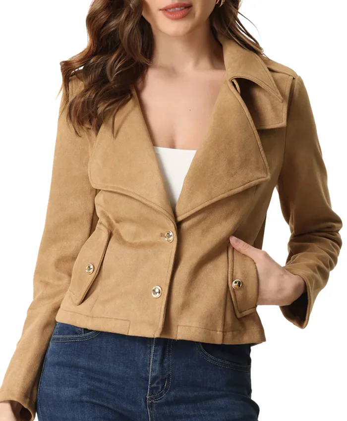 This jacket works with almost anything in your closet. Pair it with jeans and boots for a casual outing or wear it over a dress for a bold, edgy vibe. Whether you?re going to a coffee shop or a night out, it fits every occasion. The Ladies Tan Suede Jacket?gives you a stylish look with comfort. Its high-quality material makes sure it lasts a long time, so it?s perfect for everyday use. Add this jacket to your wardrobe and enjoy a timeless, trendy style that?s easy to love.