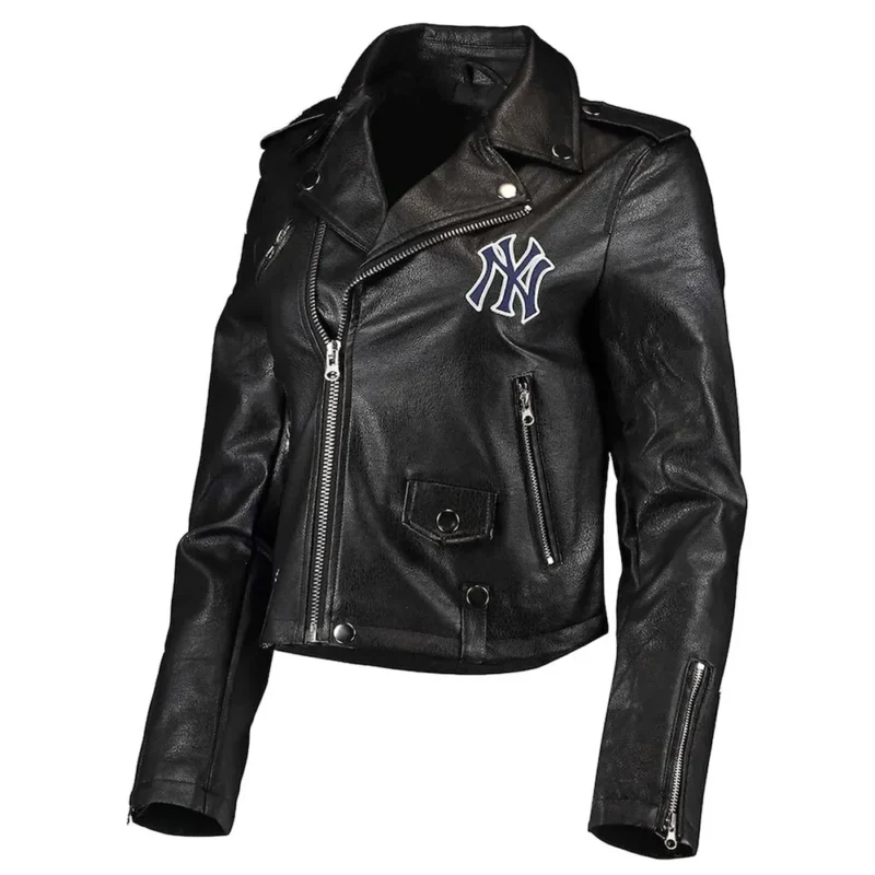 Biker NY Yankees Black Leather Jacket