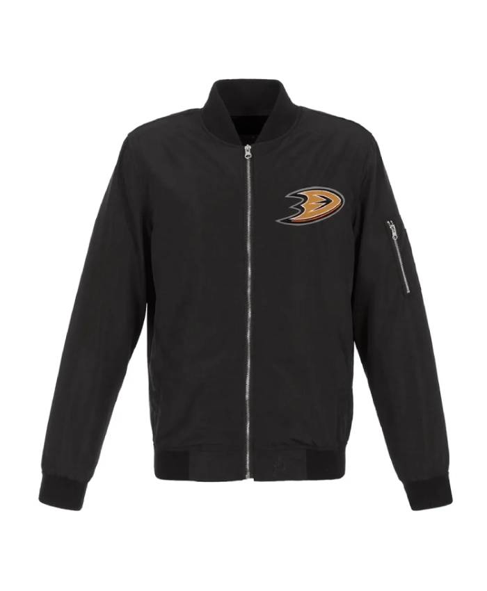 Black Anaheim Ducks Nylon Lightweight Full-Zip Bomber Jacket