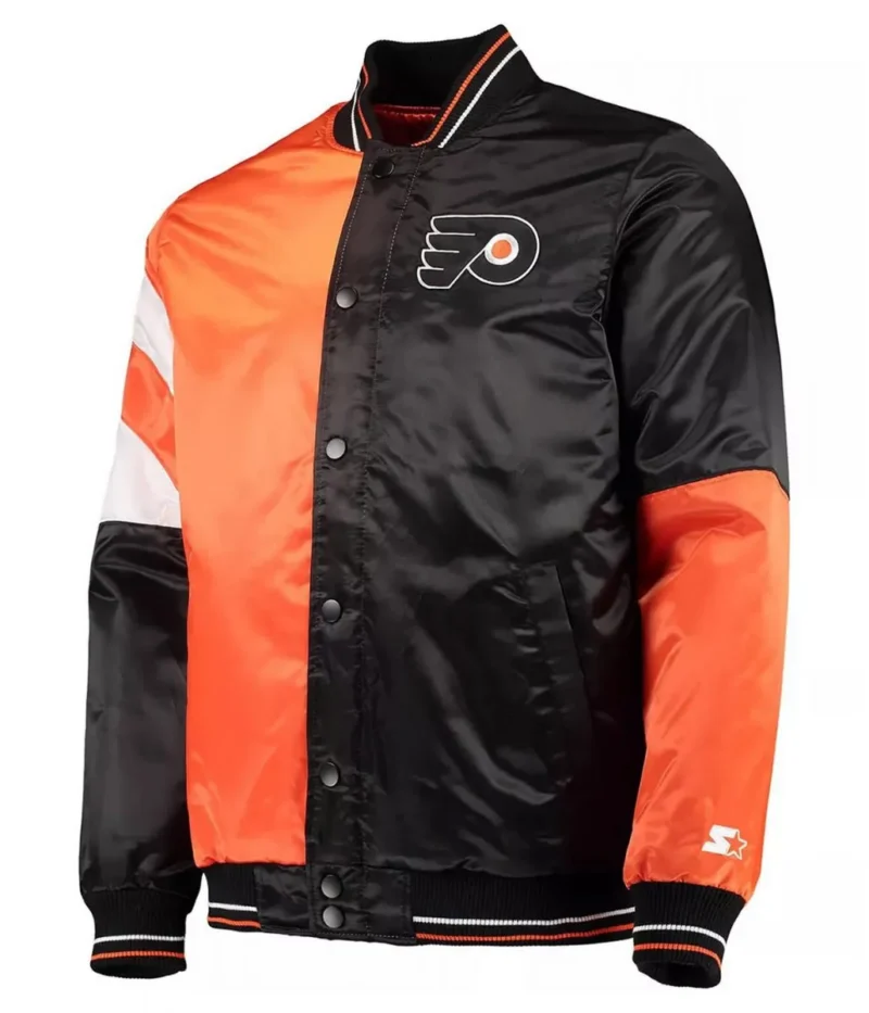 Black-Orange Philadelphia Flyers Leader Full-Snap Varsity Satin Jacket