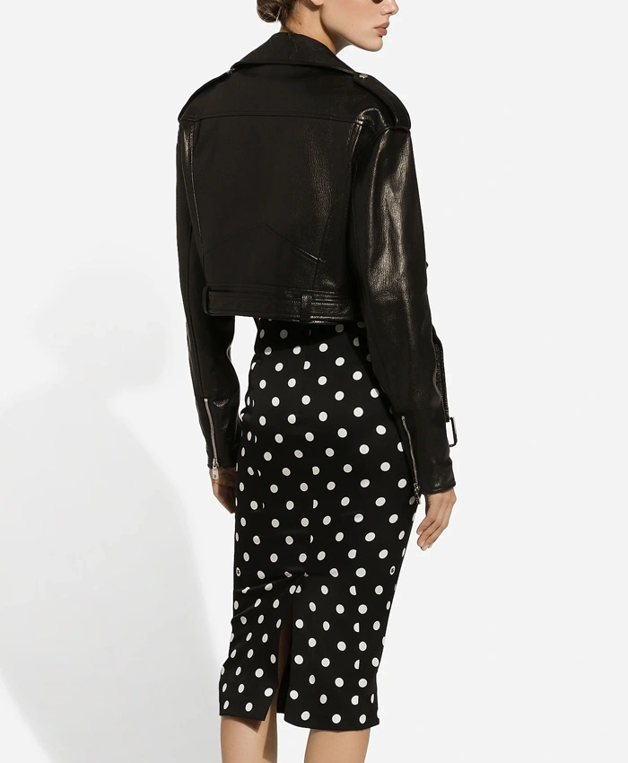 Black Biker Cropped Leather Jacket For Womens