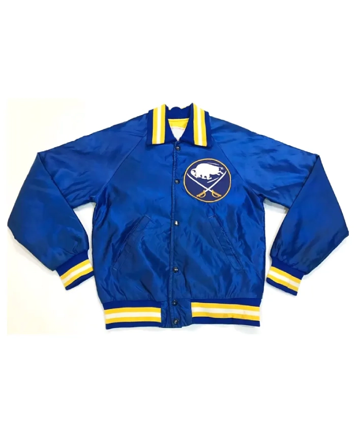 Vintage Buffalo Sabres Bomber Full-Snap Blue Satin Jacket