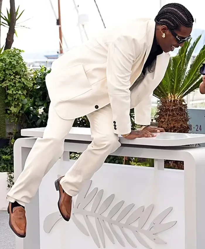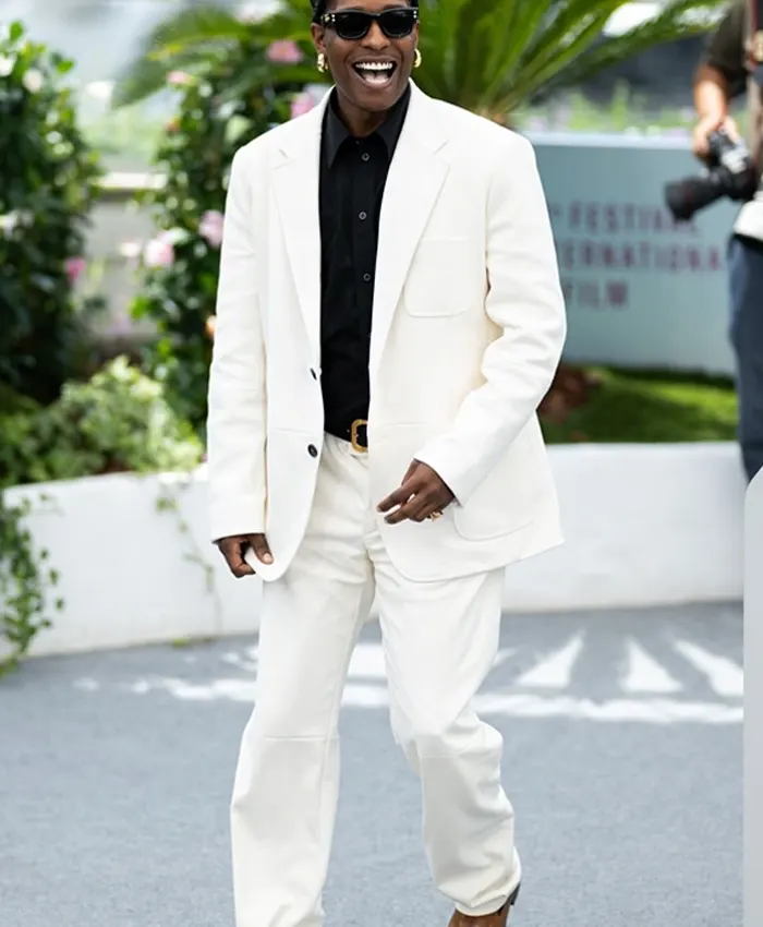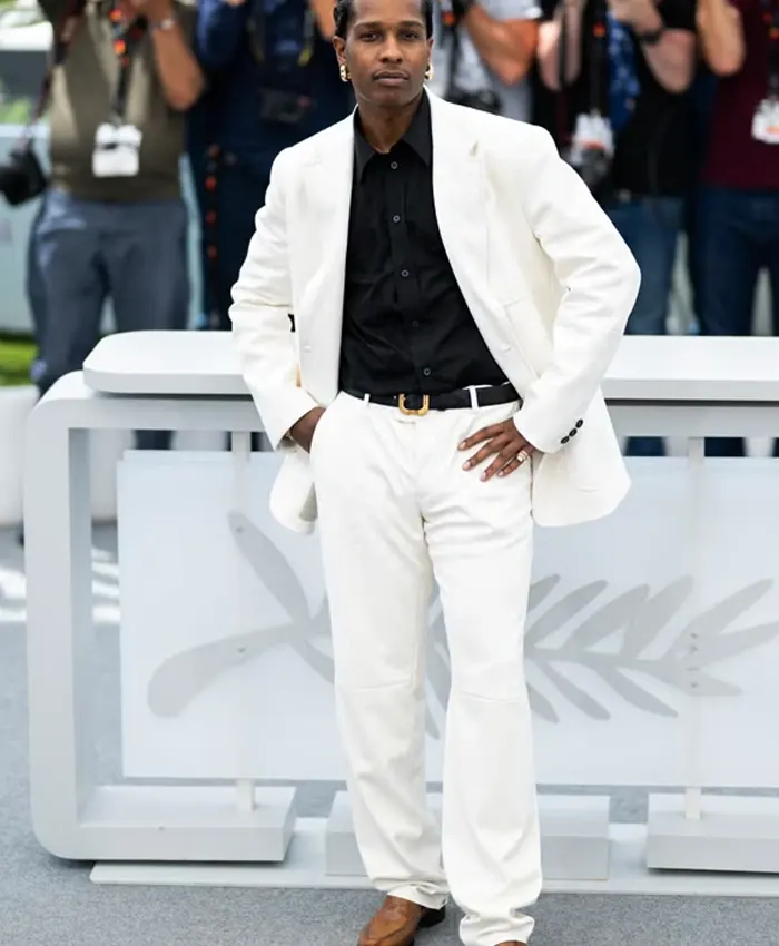 Cannes Film Festival 2025 A$AP Rocky White Suit, inspired by a bold and refined red carpet look. Designed for those who appreciate clean, modern fashion, this suit delivers a sharp appearance with a sophisticated white finish that stands out effortlessly.