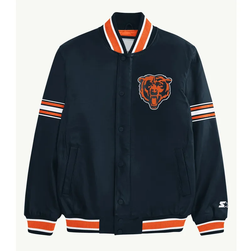 stylish and functional piece for true Chicago Bears fans. This NFL-inspired satin jacket offers a perfect blend of team pride, comfort, and classic sporty style.