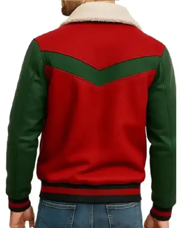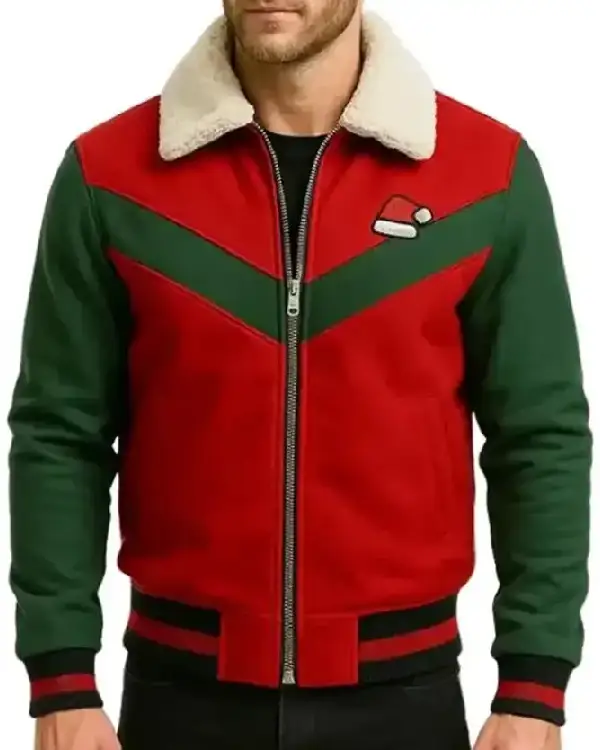 Shop Christmas Red and Green Varsity Bomber Jacket For Sale
