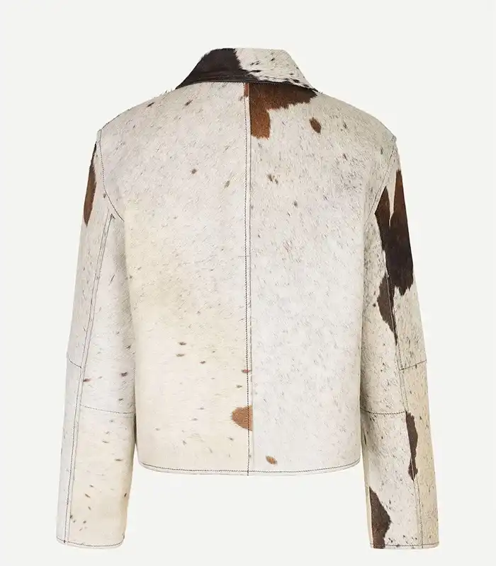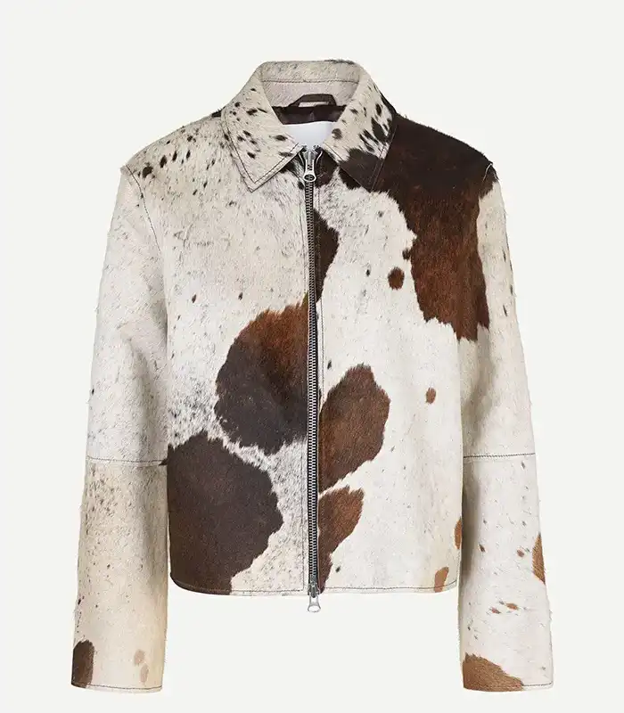 Unique colorblock design with rich cowhide fur — a bold statement piece that stands out.
