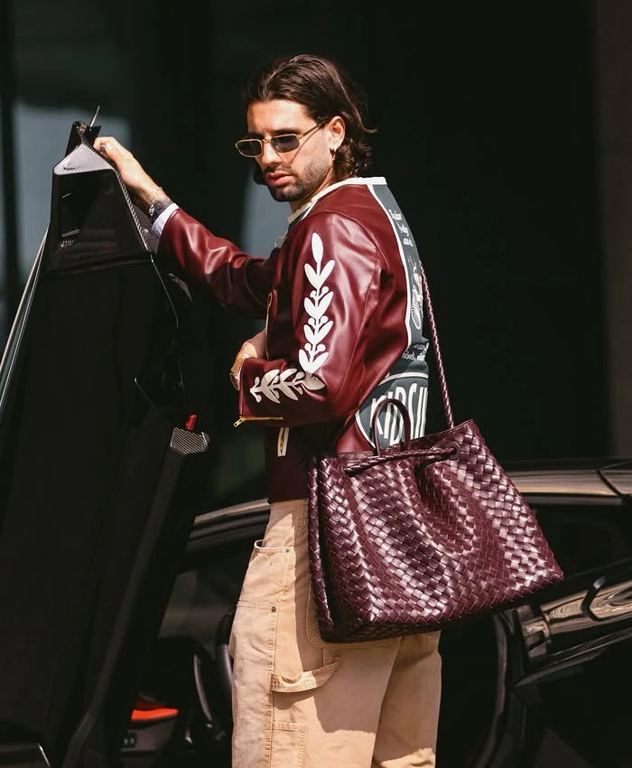 This jacket is next level. The leather quality and color combo really pop. Definitely a statement piece.