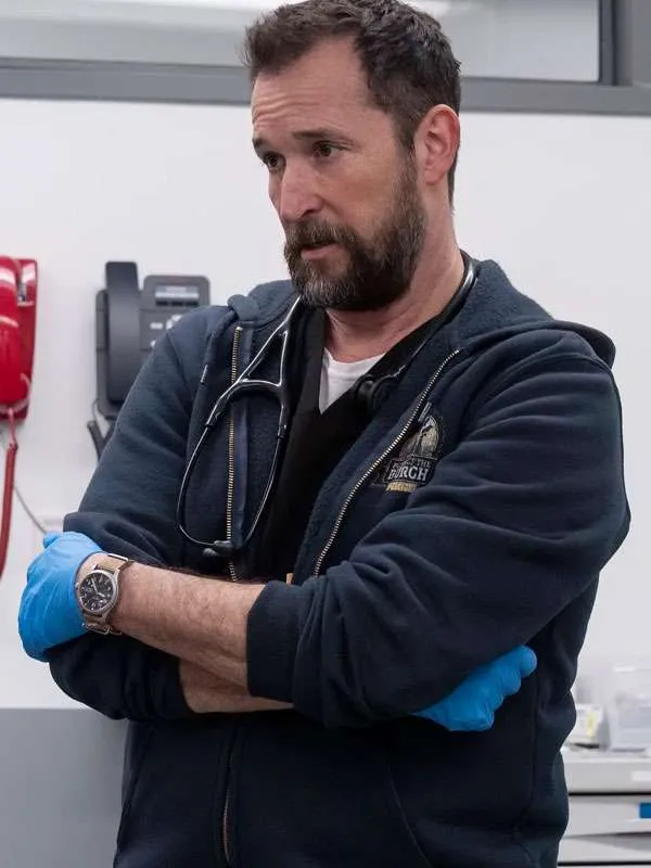 Noah Wyle The Pitt 2025 Dr. Michael Robinavitch Blue Hoodie