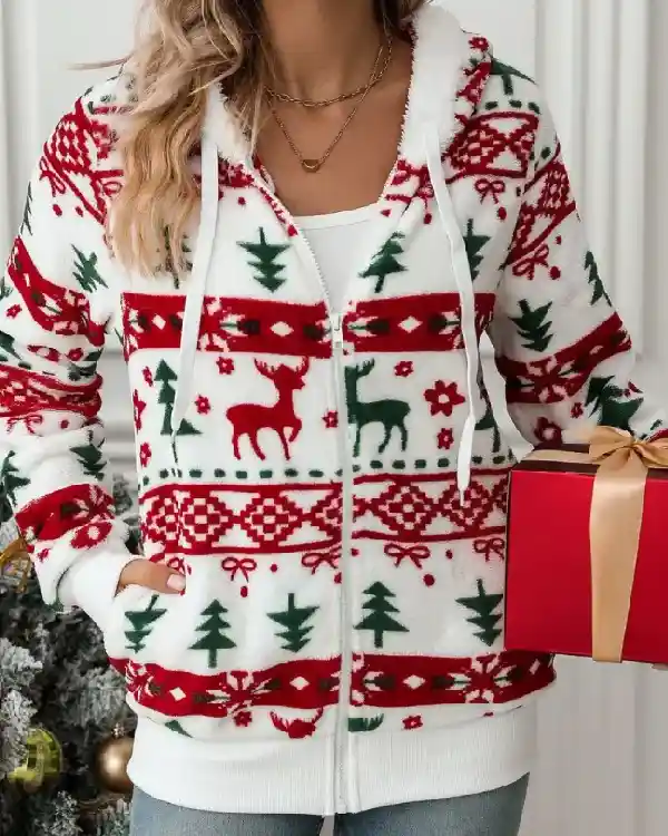 Be the first to review “Drawstring Christmas Element Hooded Jacket”