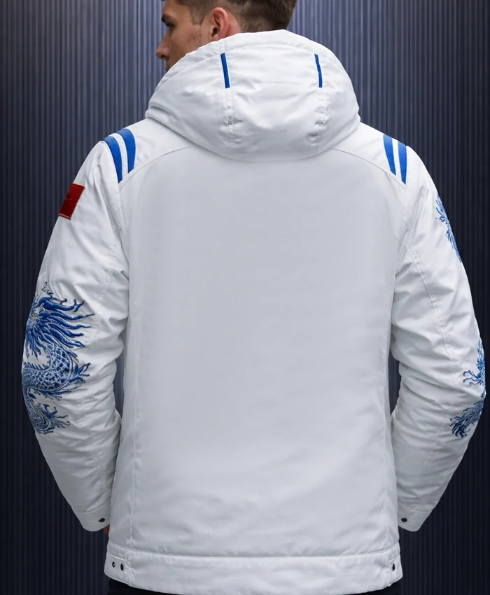 Clean white design with a cozy fit perfect Olympic style jacket.