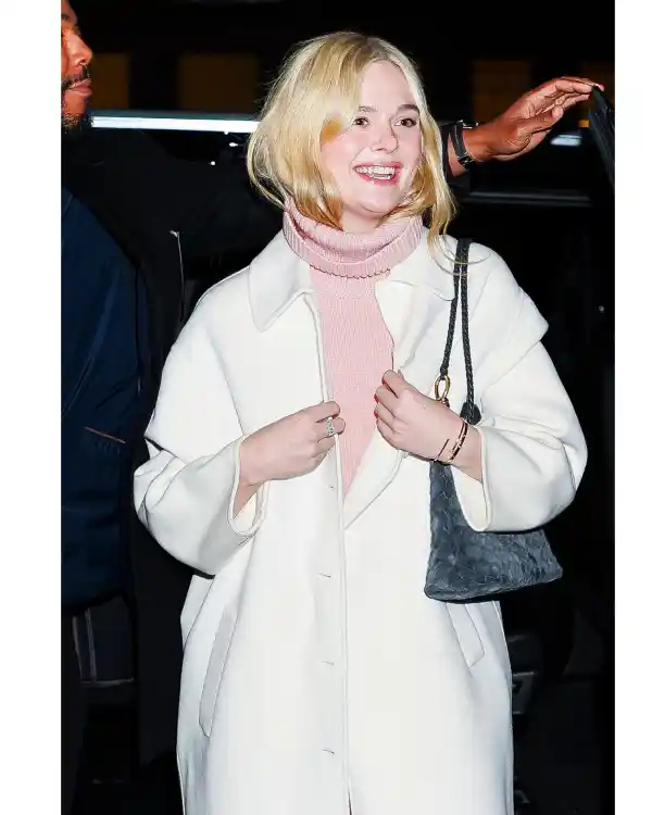 Shop Elle Fanning Sentimental Value Q&A in New York City Long White Coat