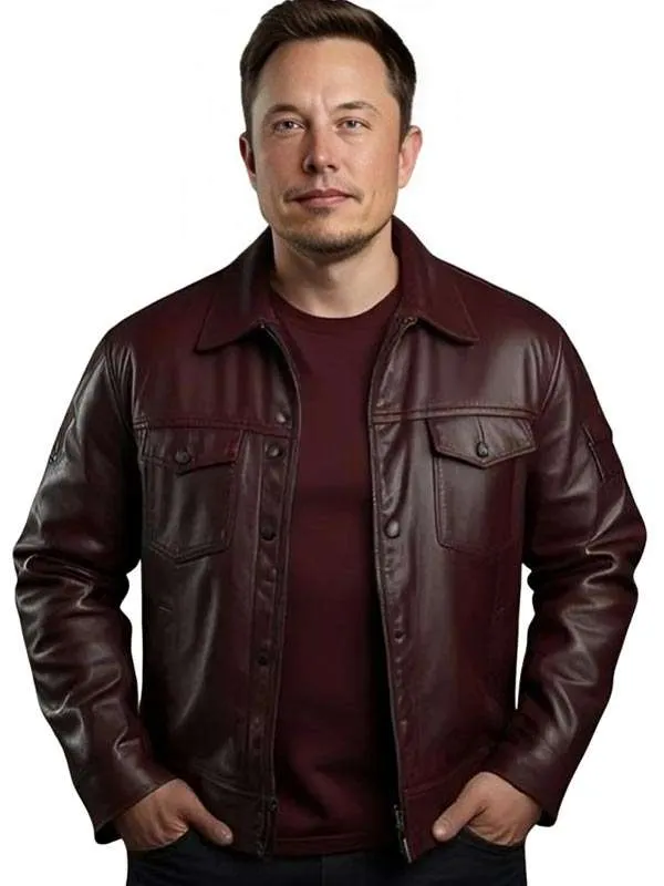 Shop Elon Musk Leather Maroon Jacket