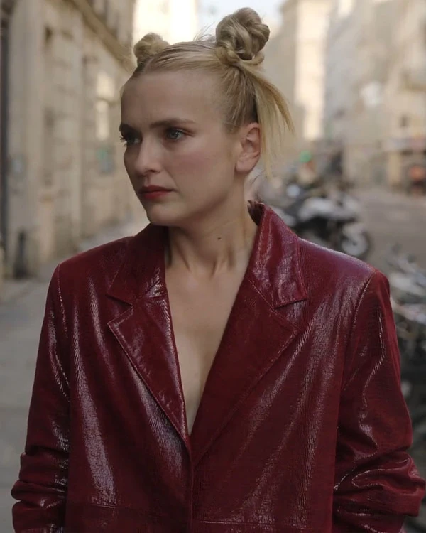 Camille Razat Emily In Paris Season 3 Camille Maroon Leather Blazer