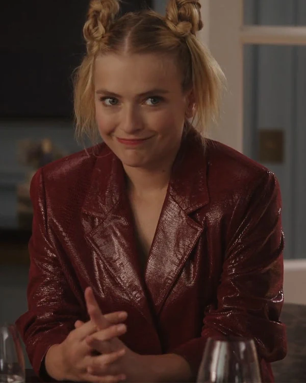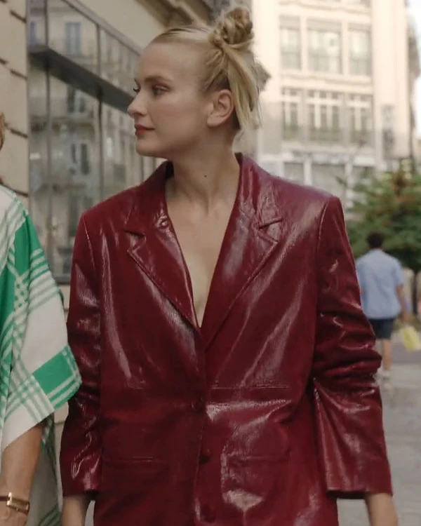 Camille is caring, sophisticated, and the daughter of the triumphant champagne company owner. She takes Emily under her circle to show her that Paris is not as big as it seems, quickly becoming one of her closest friends. Camille grew up in ?pernay, France. Her family is wealthy, her mother Louise having inherited a successful champagne company. The Emily In Paris S03 Camille Maroon Leather Blazer is made up of Genuine leather, and inside it has a viscose lining which gives you a sense of comfort and warmth. It has full-length sleeves, and open hem cuffs protect your arms against pollutants and UV rays.
