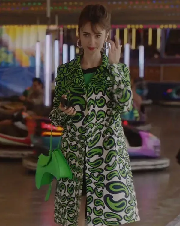 Lily Collins Emily in Paris Season 3 Episode 4 Emily Cooper Green Printed Coat