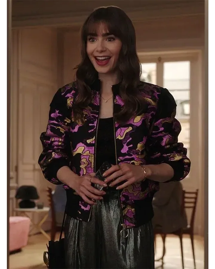 Emily Cooper TV Series Emily in Paris Season 03 Lily Collins Multicolor Bomber Jacket