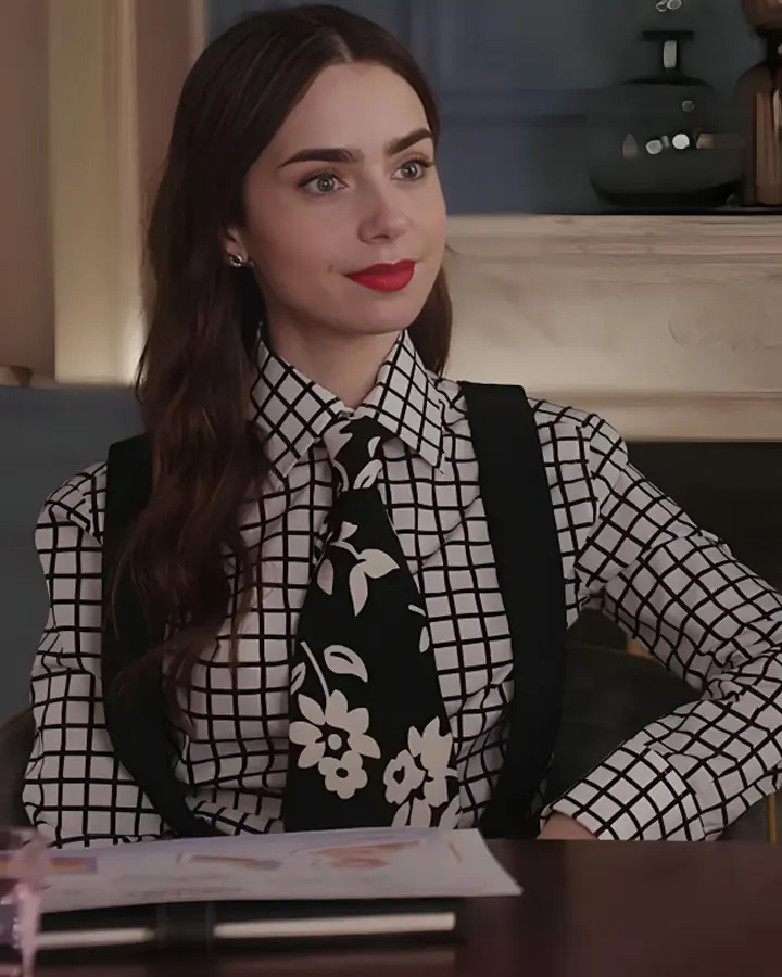 Emily in Paris S04 Lily Collins White Checked Shirt