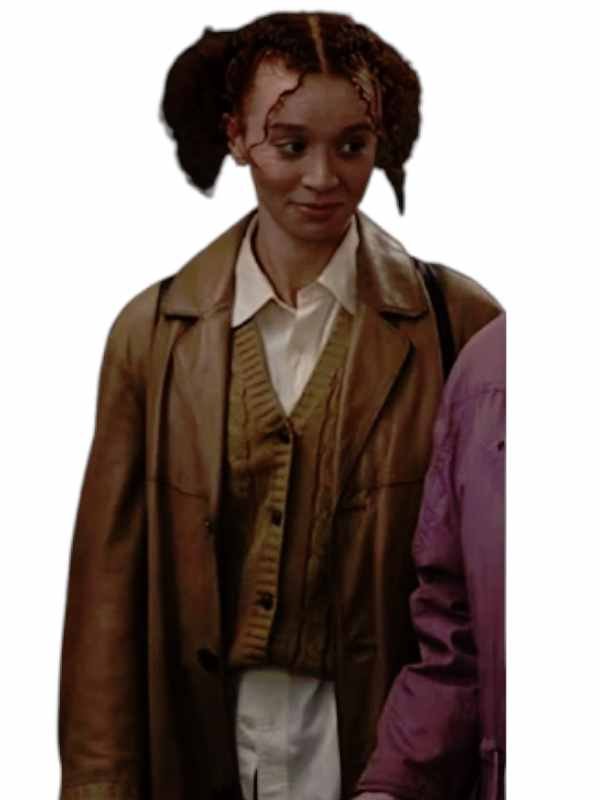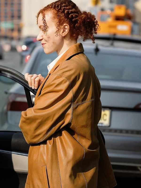 Erin Kellyman Eleanor the Great 2025 Camel Brown Leather Coat