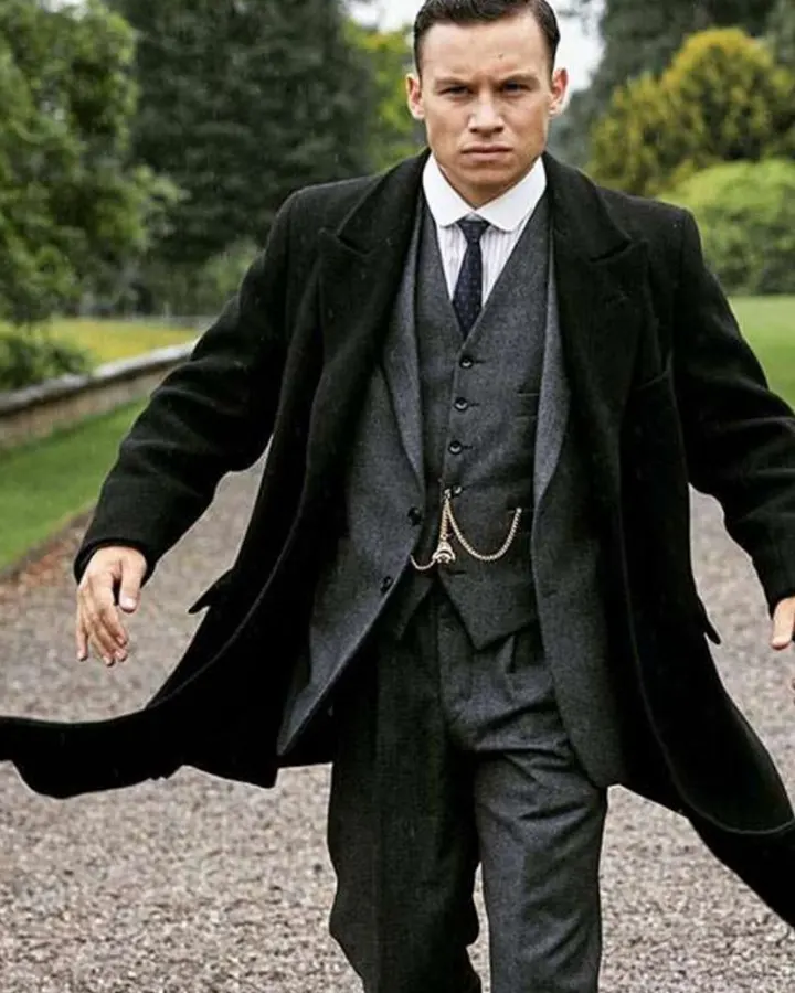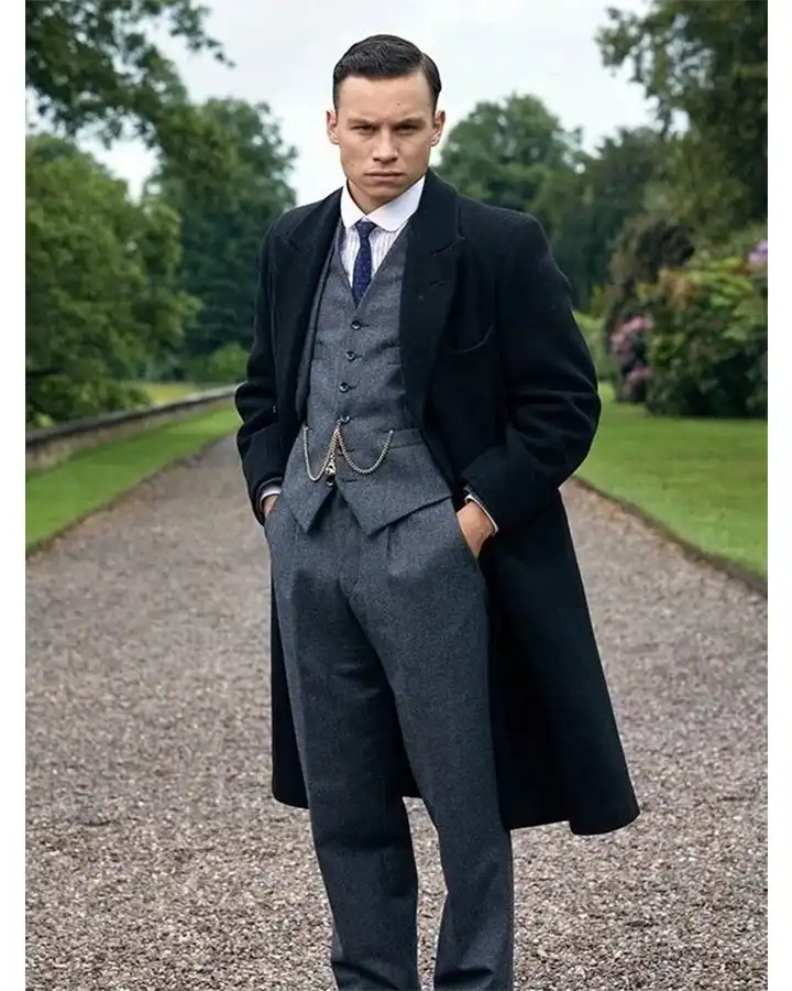 The Finn Cole Peaky Blinders Michael Gray Long Black Coat is entirely made up of wool, with the inside of viscose lining; as it’s made up of wool, don’t even think about the winter cold.