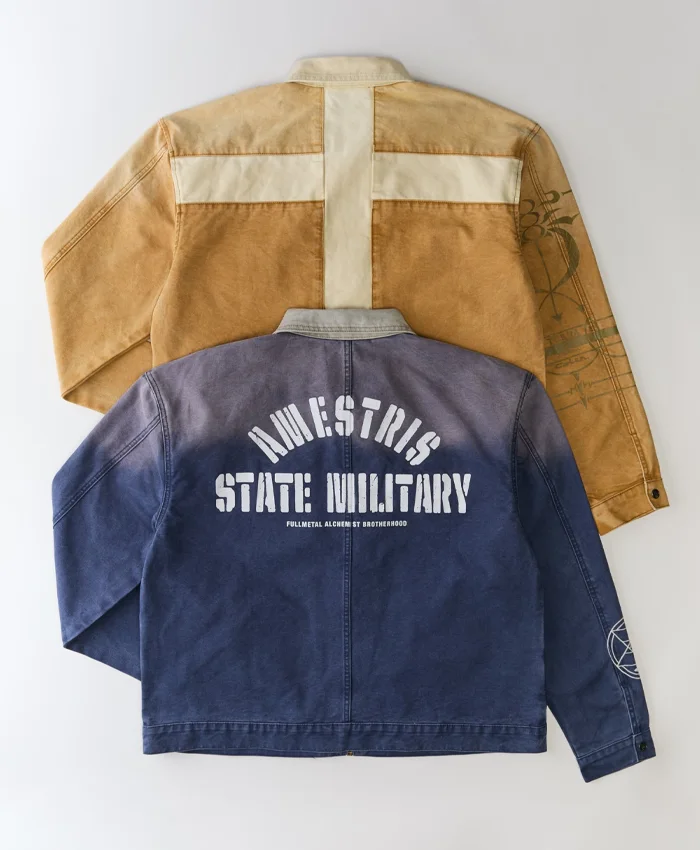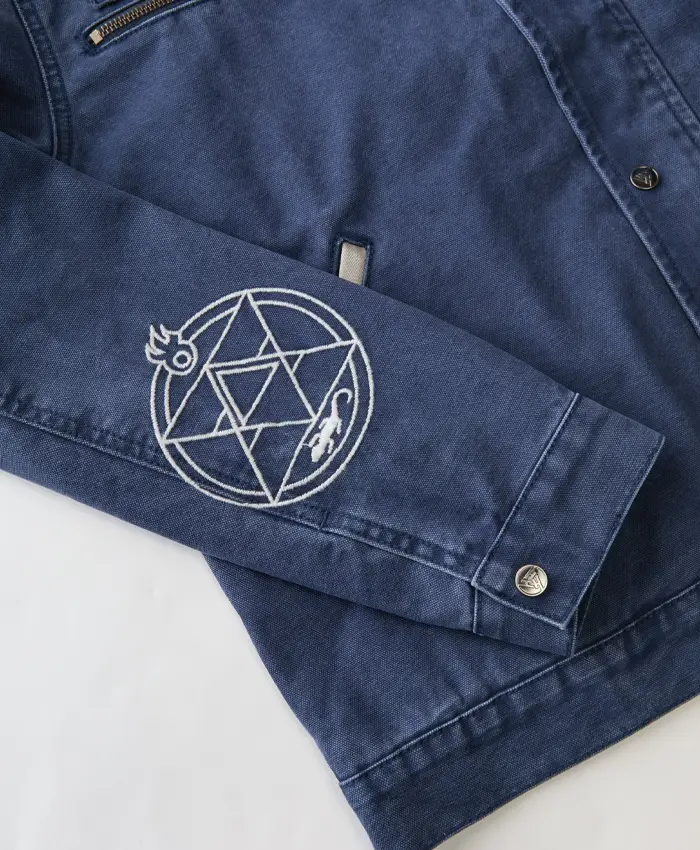 Stylish trucker jacket with a bold Fullmetal Alchemist vibe.