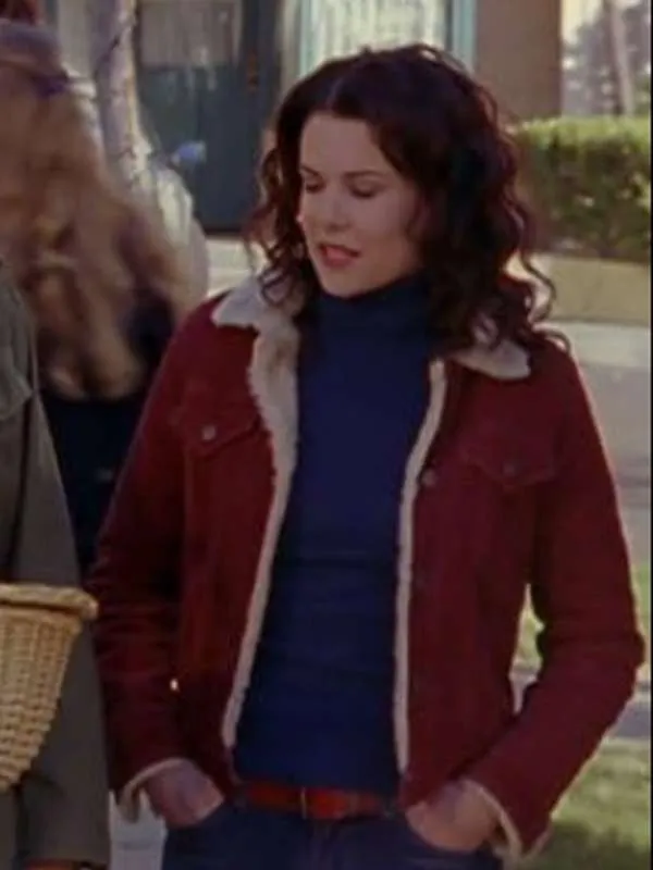 Lauren Graham Gilmore Girls S02 Lorelai Gilmore Shearling Maroon Jacket