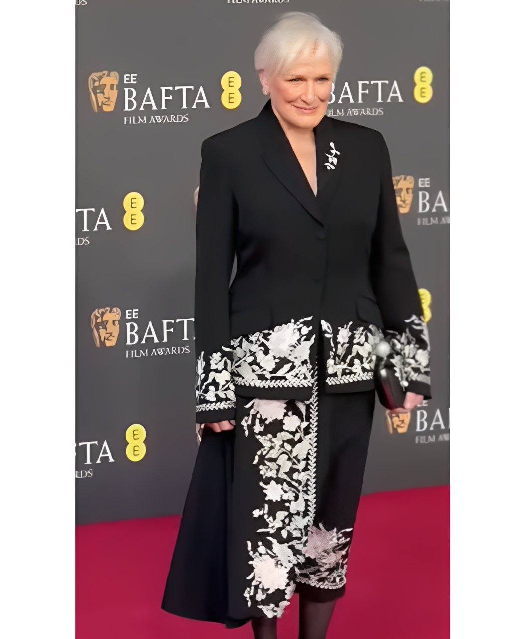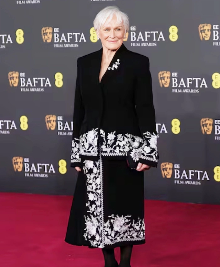 Make a bold entrance with the Glenn Close BAFTA 2026 Black Floral Coat, inspired by the unforgettable red-carpet appearance of Glenn Close at the BAFTA Film Awards 2026 ceremony. Known for her refined and timeless style, Glenn Close captivated audiences in an elegant black coat highlighted with intricate silver floral embroidery — a design that perfectly balanced sophistication with artistic flair.