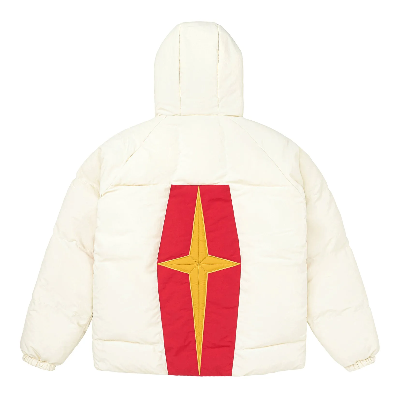 I absolutely love this jacket! The RX-78 inspired design looks amazing and really stands out. The color combination of blue, red, and yellow on the off-white base is perfect. It’s warm, comfortable, and fits great. Definitely a must-have for Gundam fans.