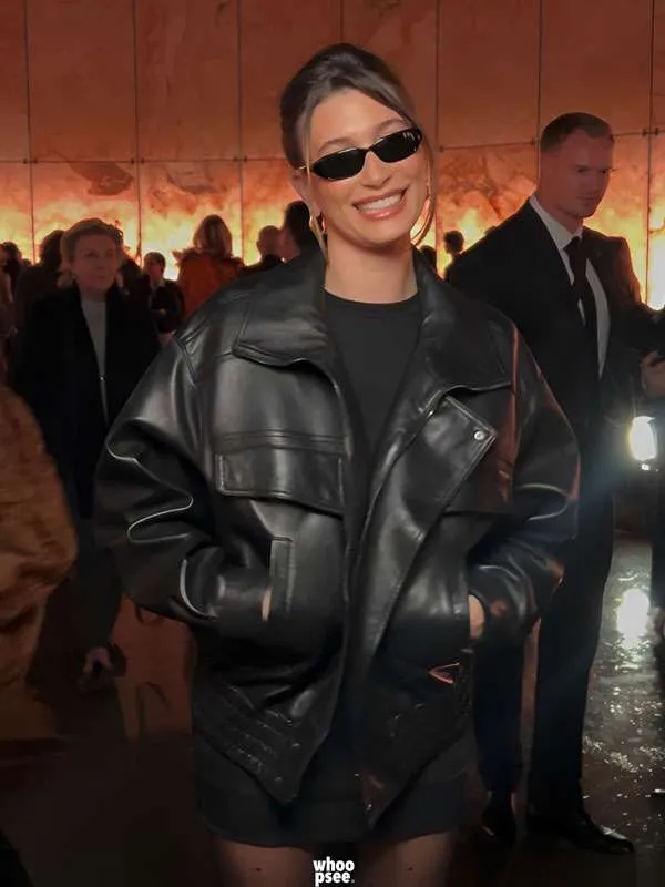 Hailey Bieber PFW 2025 Leather Jacket
