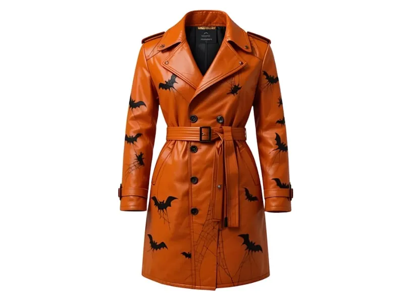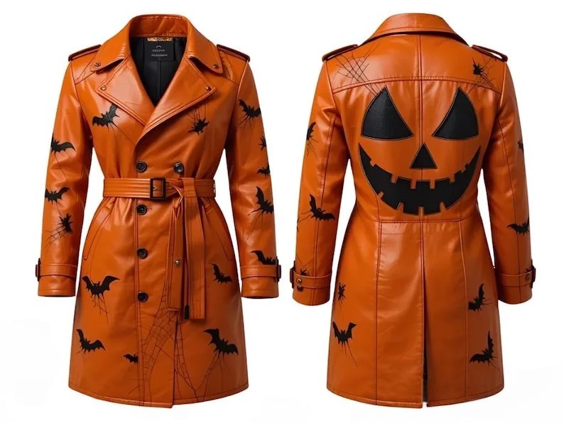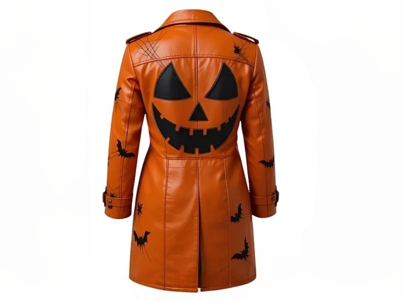 Halloween Pumpkin Leather Trench Coat Unisex Cosplay Overcoat