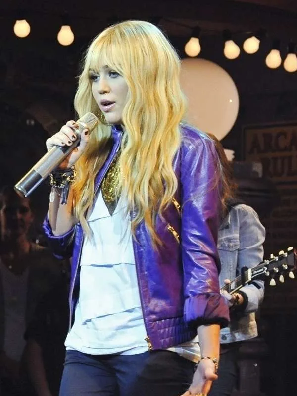 Hannah Montana Miley Cyrus Purple Bomber Leather Jacket