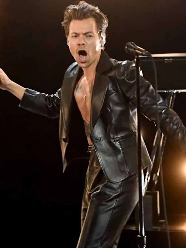 Rock the iconic look with the Harry Styles Grammy Award Leather Jacket. Crafted from premium leather with a sleek fit, this jacket captures Harry’s edgy yet refined style from the Grammy Awards—perfect for fans wanting a bold, music-inspired statement piece.