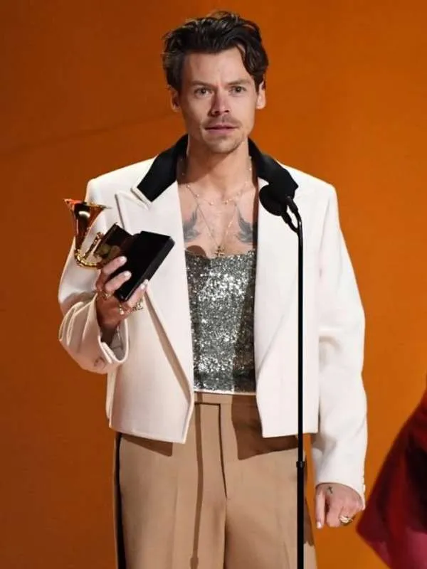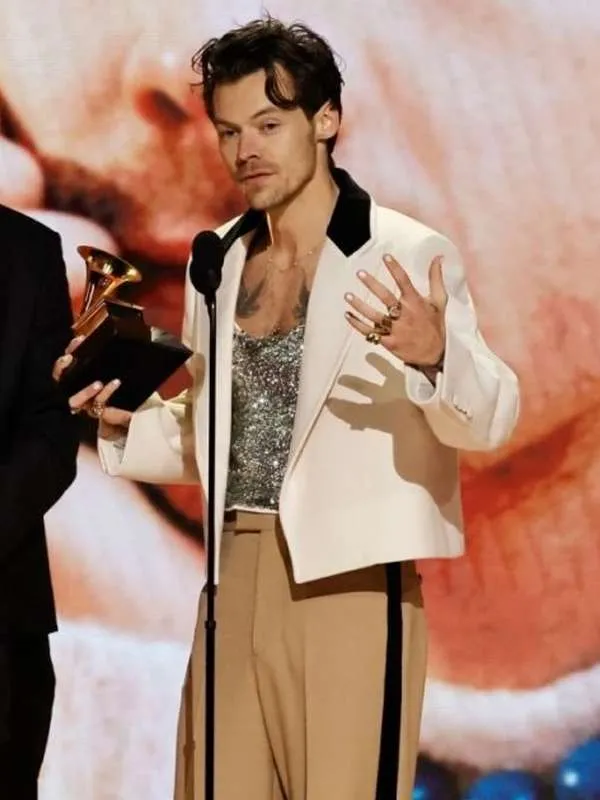 Step into the spotlight with the Harry Styles Grammys Off White Blazer. Inspired by his iconic red carpet look, this blazer features a sleek off-white finish, tailored fit, and premium fabric—perfect for adding a touch of star-quality style to any occasion.