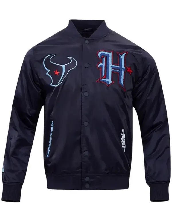Shop Houston Texans H-Town Navy Satin Black Jacket For Sale