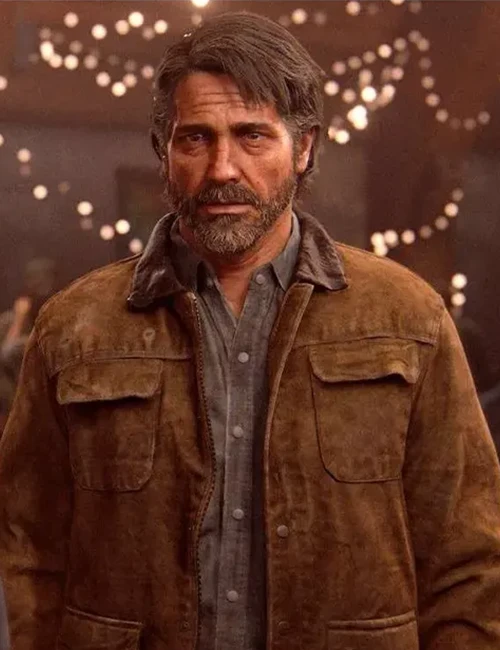 Troy Baker Video Game The Last of Us Part 2 Joel Miller Brown Suede Leather Jacket