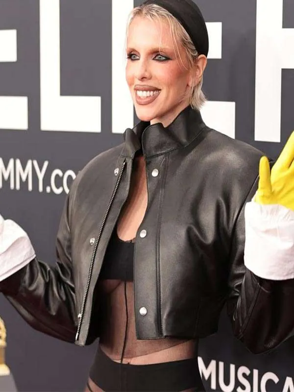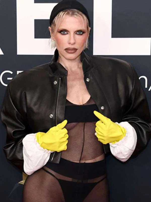Make a statement with the Julia Fox Black Leather Jacket, inspired by her unforgettable appearance at the 2025 Grammys Red Carpet. This jacket embodies sophistication, glamour, and edgy celebrity style, making it a must-have for fans and fashion lovers. Premium Leather & Comfortable Fit Crafted from high-quality black leather, this jacket offers durability, luxurious feel, and all-day comfort. Its smooth inner lining and tailored fit make it perfect for red carpet events, evening outings, or high-fashion streetwear looks. Celebrity-Inspired Bold Design Featuring sleek stitching, contemporary silhouette, and clean lines, this jacket captures Julia Fox’s daring and fashion-forward aesthetic. The front zipper closure, adjustable cuffs, and sharp detailing add both functionality and standout style.