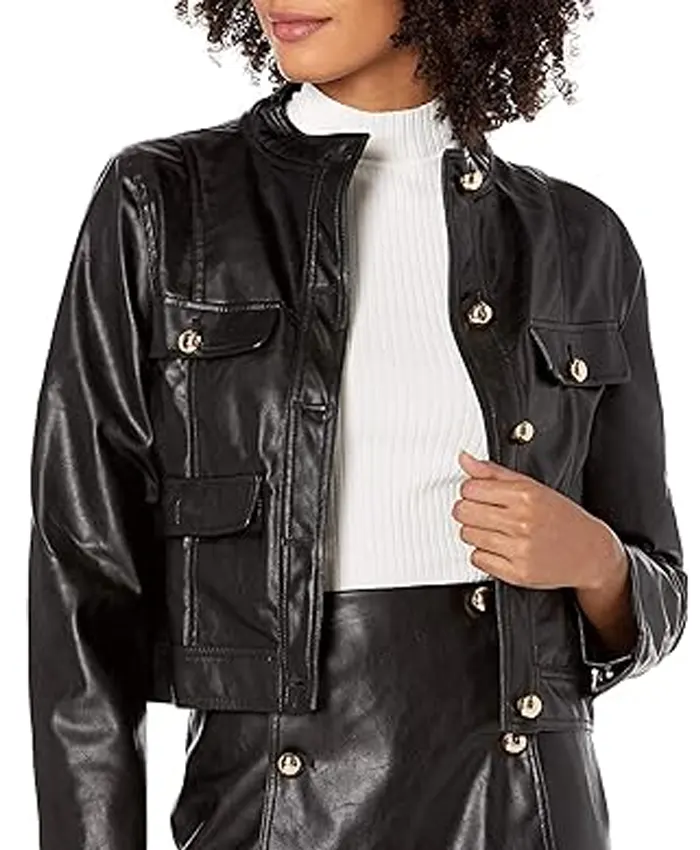 Sometimes, a jacket can feel the perfect finishing touch to an outfit, and the Kendall and Kylie leather cropped jacket is just that. With its sleek black design, this jacket adds an effortless edge to any look. We have made this jacket with PU leather; it offers the chic appearance of real leather while being lightweight and comfortable enough to wear all day. The smooth viscose lining inside ensures a cozy feel, so you can enjoy wearing it without feeling bounded.